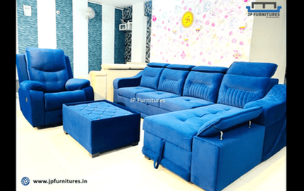 "Enhance your living room with our luxurious U-shaped sofas, designed for large gatherings. Enjoy unmatched seating space and contemporary design from JP Furnitures, Hyderabad's trusted sofa brand."